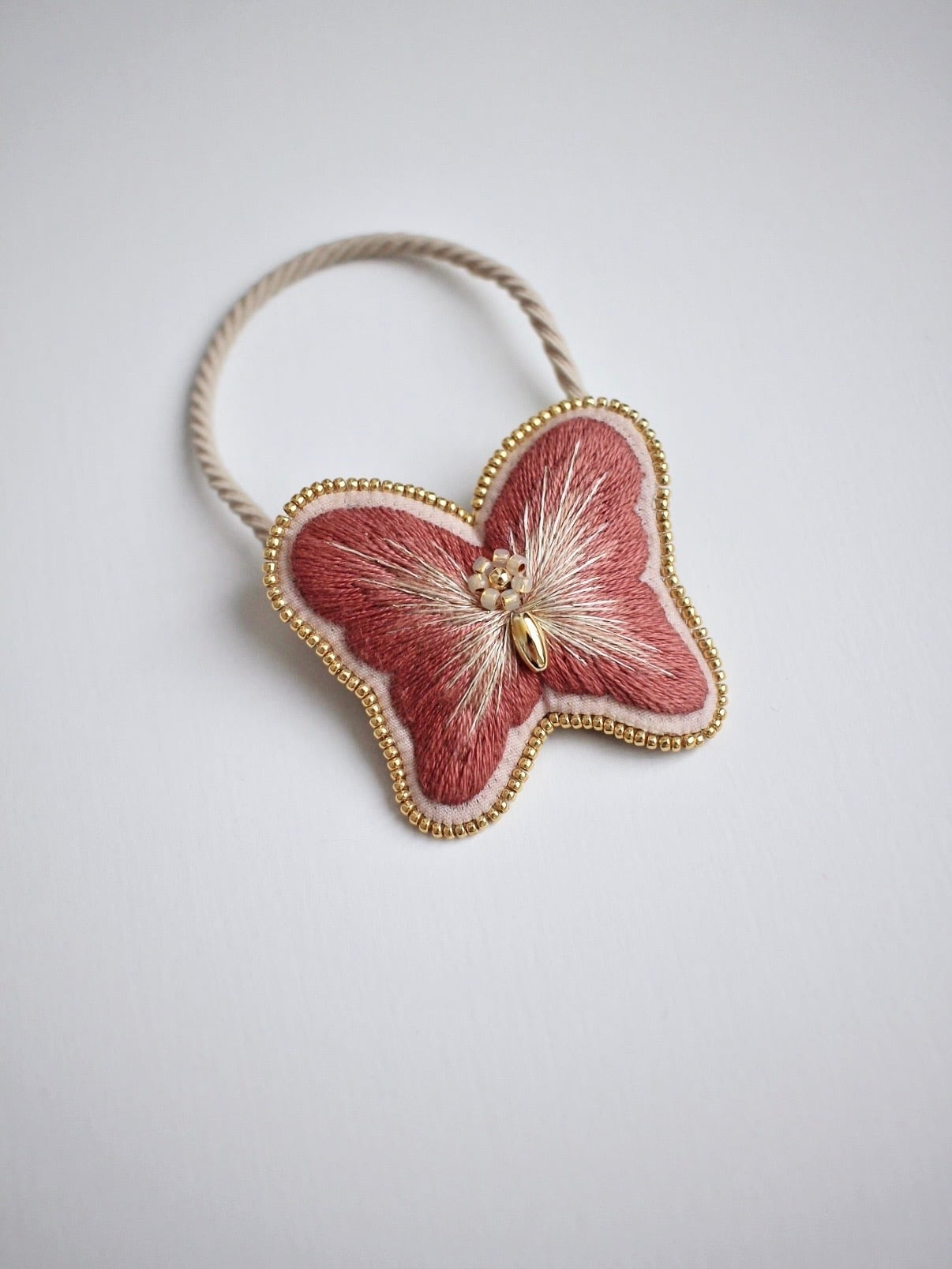 バタフライ刺繍のヘアゴム/ヘアクリップ